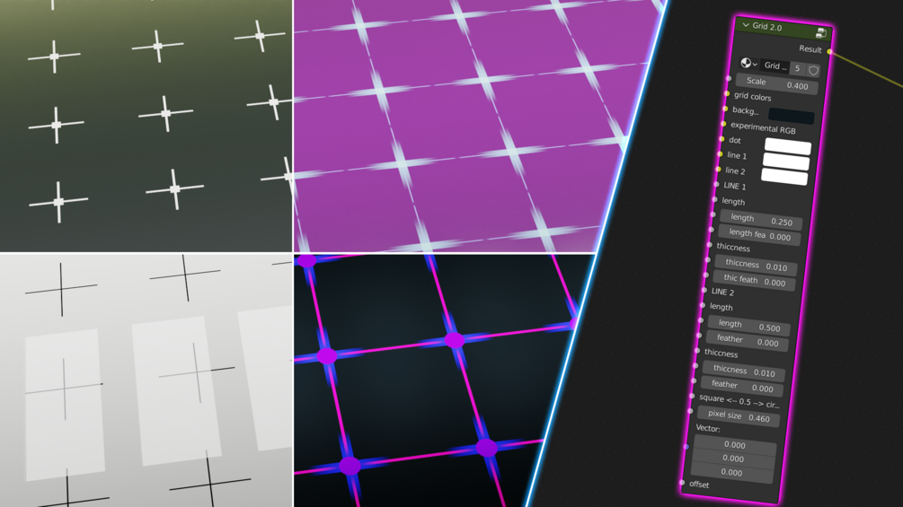 This Blender Node addon Helps you make grid textures procedurally within blender, fast and easily.